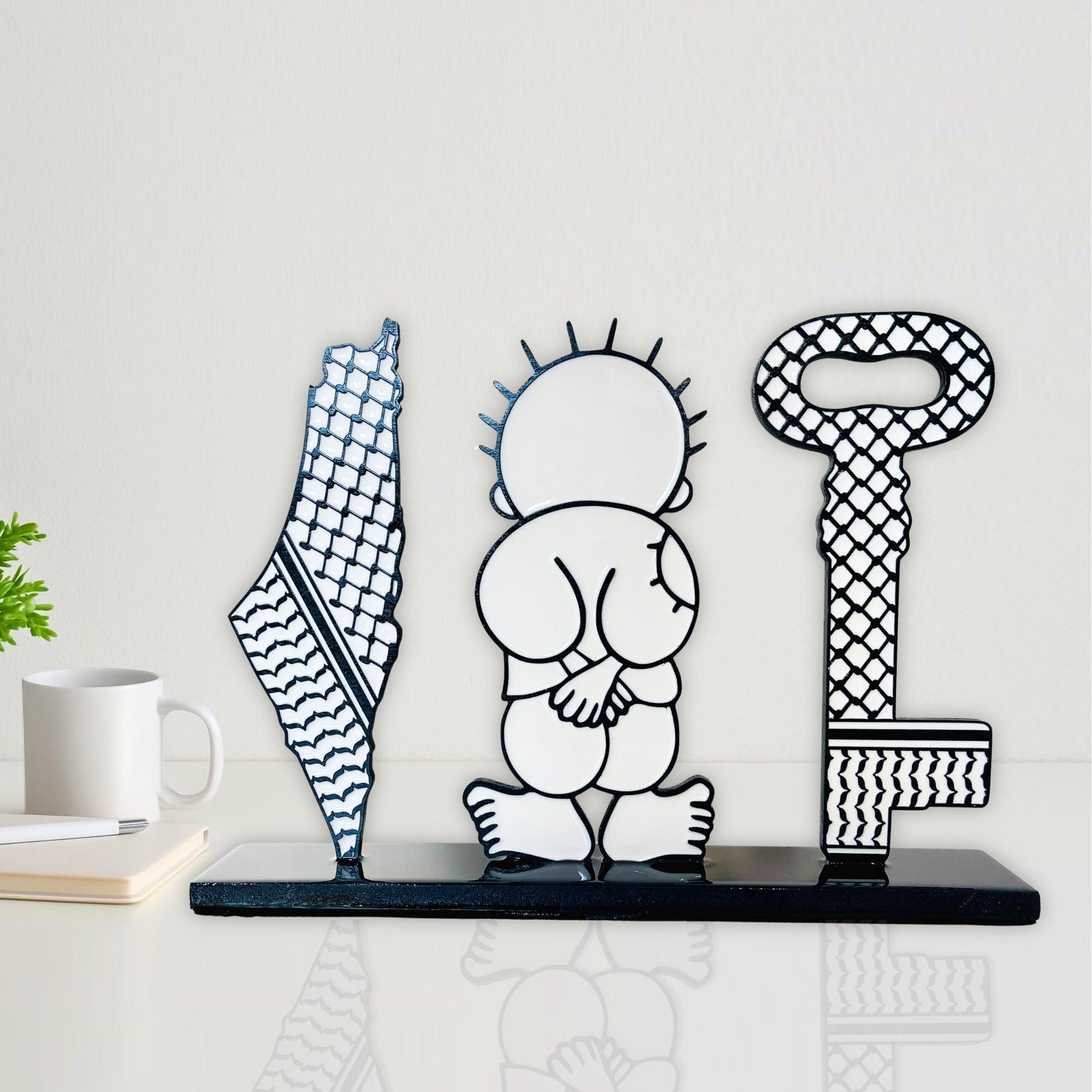 خريطة فلسطين مع حنظلة ومفتاح العودة